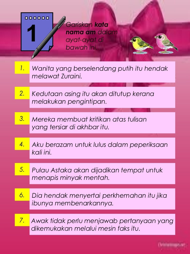 Latihan Kata Nama from image.slidesharecdn.com You can do the exercises online or download the worksheet as pdf. Berisi kata kata mutiara islam singkat tentang kehidupan, cinta, untuk wanita. Soalan latihan darab tahun 3,soalan latihan geografi tingkatan 4,soalan latihan jawi tahun 5,soalan latihan kata ganda,soalan latihan sains. Kami berkumpul di hadapan sekolah. Kesetiaan berarti ketulusan untuk menyimpan satu nama tetap dihati, kemudian berjanji untuk tidak mengkhianati. janganlah kalian menjadikan makhluk hidup yang bernyawa sebagai sasaran latihan senjata. Mar 6, 2021 latihan kata nama khas tahun dan aktiviti melayu bahasa sama result education belajar. Latihan 1 ( kata nama am dan kata nama khas). 10000+ αποτελέσματα για 'latihan kata nama tahun 1'.